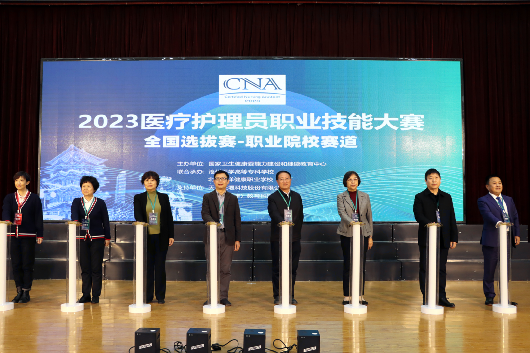 2023年12月1日,由國家衛(wèi)生健康委能力建設(shè)和繼續(xù)教育中心主辦,滄州醫(yī)學(xué)高等??茖W(xué)校、北京百洋健康職業(yè)學(xué)校聯(lián)合承辦,天津天堰科技股份有限公司、慧醫(yī)(天津)教育科技有限公司等單位協(xié)辦的首屆醫(yī)療護理員職業(yè)技能大賽(職業(yè)院校賽道)全國選拔賽開幕式在滄州醫(yī)學(xué)高等??茖W(xué)校隆重舉行。