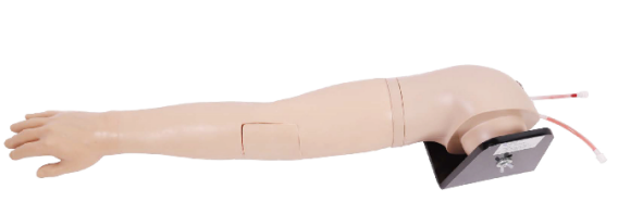 該靜脈輸液手臂模型是第五代產(chǎn)品,可實(shí)現(xiàn)手背靜脈網(wǎng)以及肘部靜脈網(wǎng)的輸液、穿刺及注射訓(xùn)練。該產(chǎn)品由硅膠材料制成,觸感和外觀都極度仿真,代表了天堰科技人體模型的較高水準(zhǔn)。
